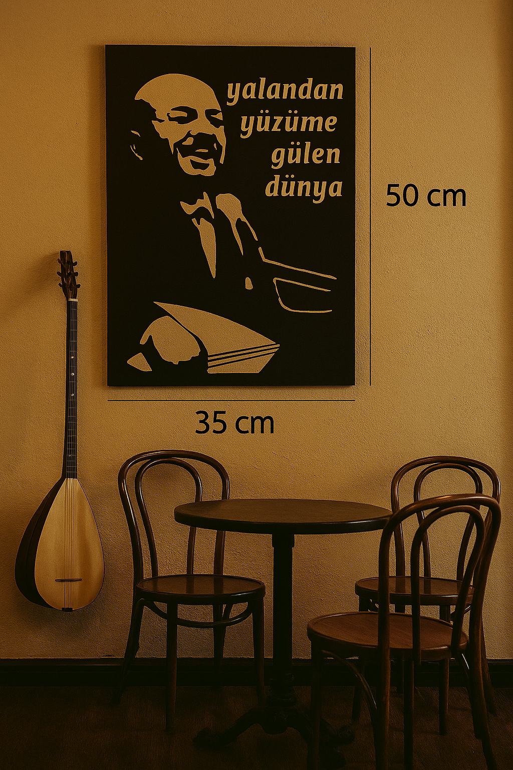 Ahşap İşleme Duvar Süsü- NEŞET ERTAŞ Silüeti- 50 cm x 35 cm