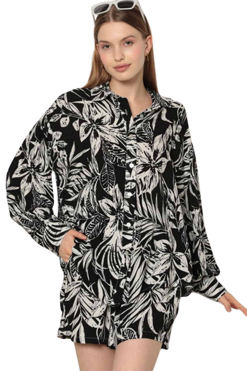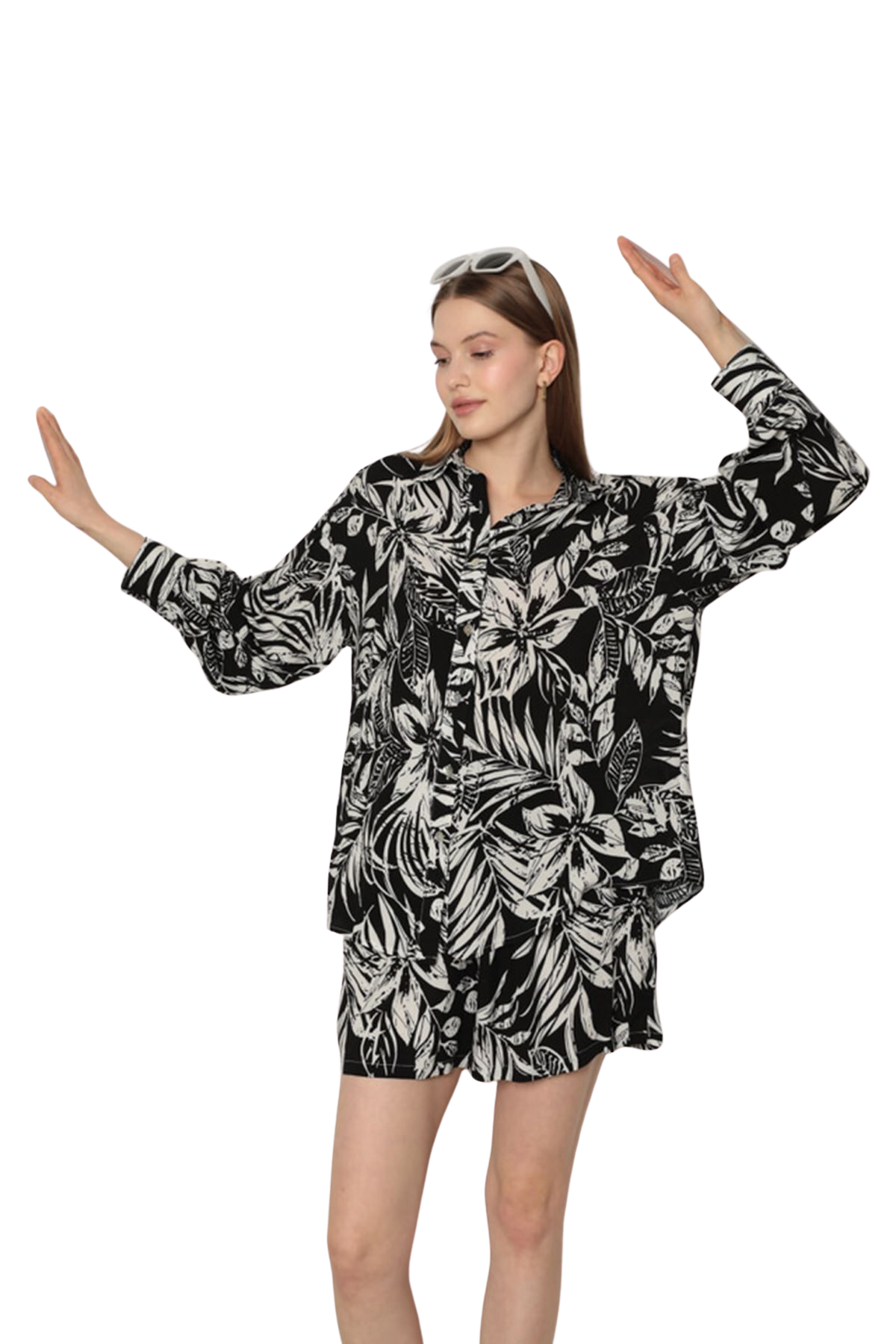 Şortlu takım, göz alıcı desenler ve modern çizgiler ile öne çıkmaktadır. Üst kısmı, zarif bir yaka detayı ve rahat bir kesim ile tasarlandı. Bu özellik, vücudu sararak şıklık katarken, aynı zamanda hareket özgürlüğü sağlar. Şort kısmı ise belden ayarlanabilir lastikli tasarımı sayesinde gün boyu konfor sunar.