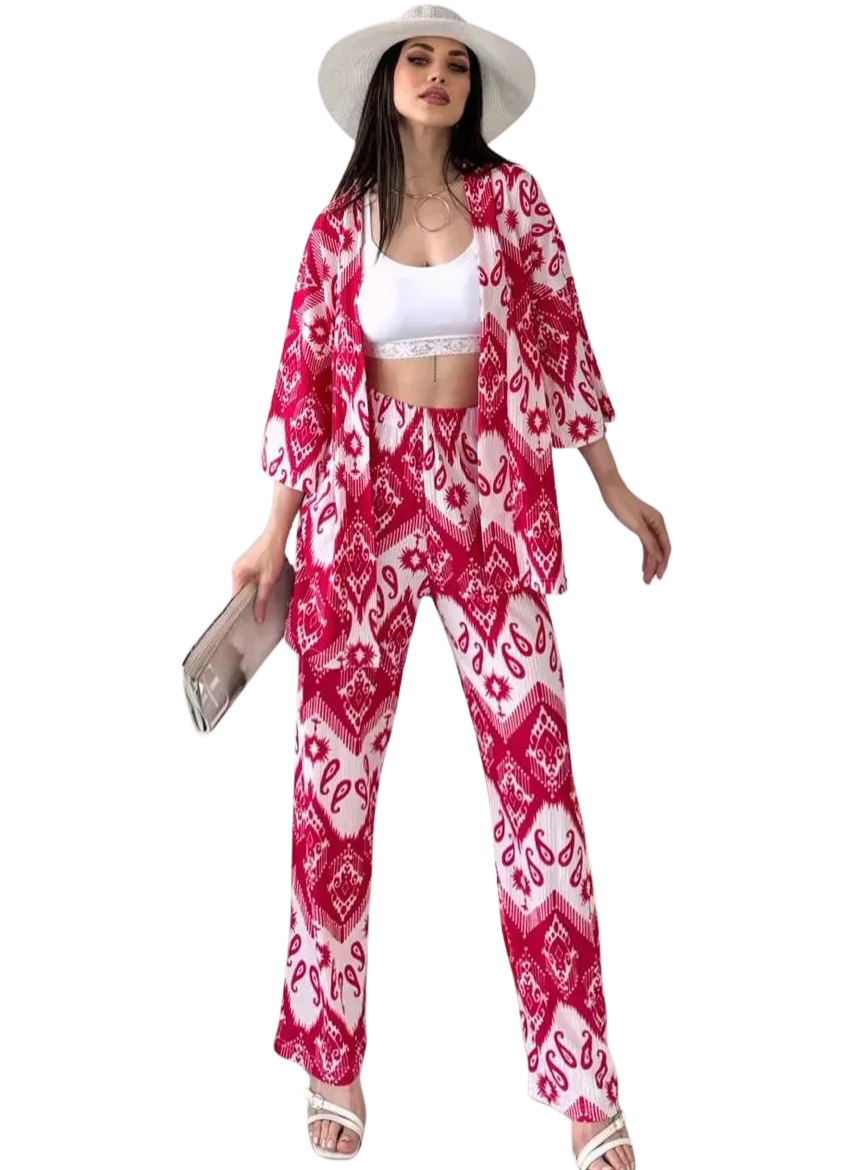 Üzerinde zarif desenler barındıran Alt Üst Takım Kimono, şıklığı ve konforu bir arada arayan kadınlar için tasarlanmıştır. Günlük kullanımda rahatlık sağlayan bu takım, aynı zamanda özel davetlerde de göz alıcı bir tercih olacaktır. Kaliteli kumaş yapısı sayesinde yumuşak bir dokuya sahip olan kimono, cildinize dost olmasıyla dikkat çeker.