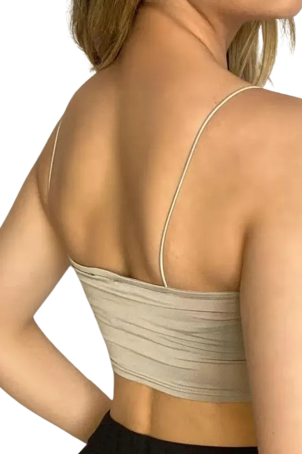 Askılı Crop Bluz - BEJ