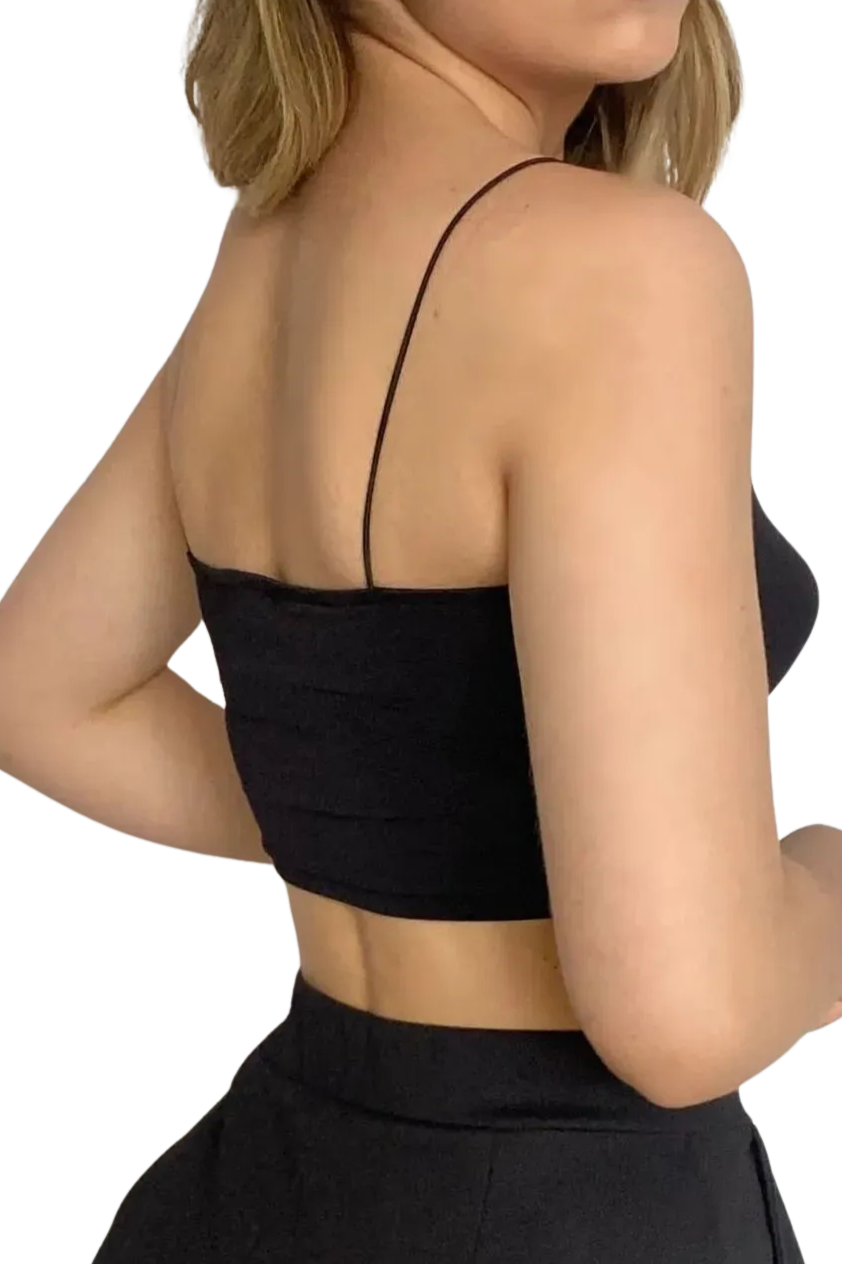 Farklı kesimi ve zamansız siyah rengi ile Askılı Crop Bluz, sezonun modasına ayak uydururken rahatlığı da ön planda tutan bir tasarım. Her bedene uygun olması ve kombinlenebilirliği sayesinde farklı stilleri yansıtma imkanı sunar. Hem şık hem de rahat bir alternatif arayanlar için ideal bir seçim.