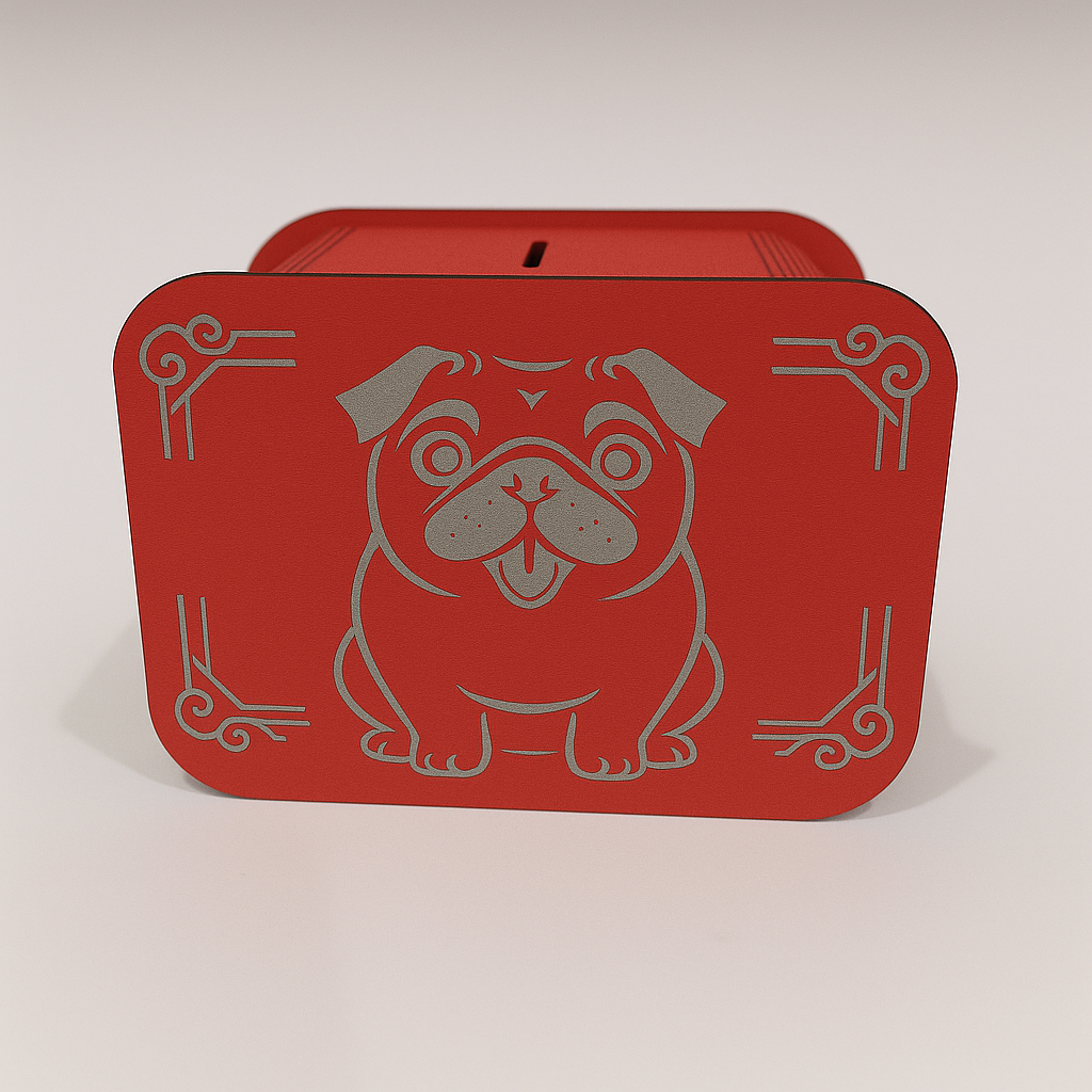 Köpek Kumbara - Ağaç işleme -Ceviz Ağacı-Kırmızı