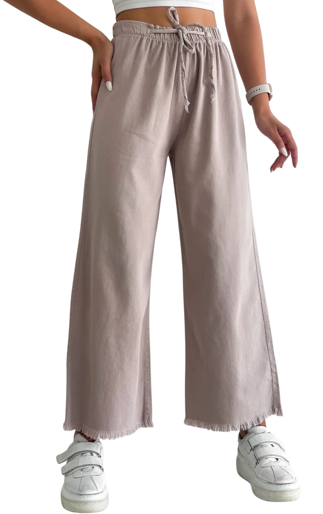 Palazzo Pantolon Paçası Püsküllü - Bej, zarif tasarımı ve konforlu yapısıyla her dolabın vazgeçilmezi olmaya hazır. Yaz ve bahar aylarının sıcak günlerinde tercih edebileceğiniz bu pantolon, hafif ve nefes alabilir kumaşı sayesinde gün boyu rahatlık sağlıyor. Bej rengi, her türlü üst kombinle uyum sağlayarak şıklığınızı tamamlıyor.