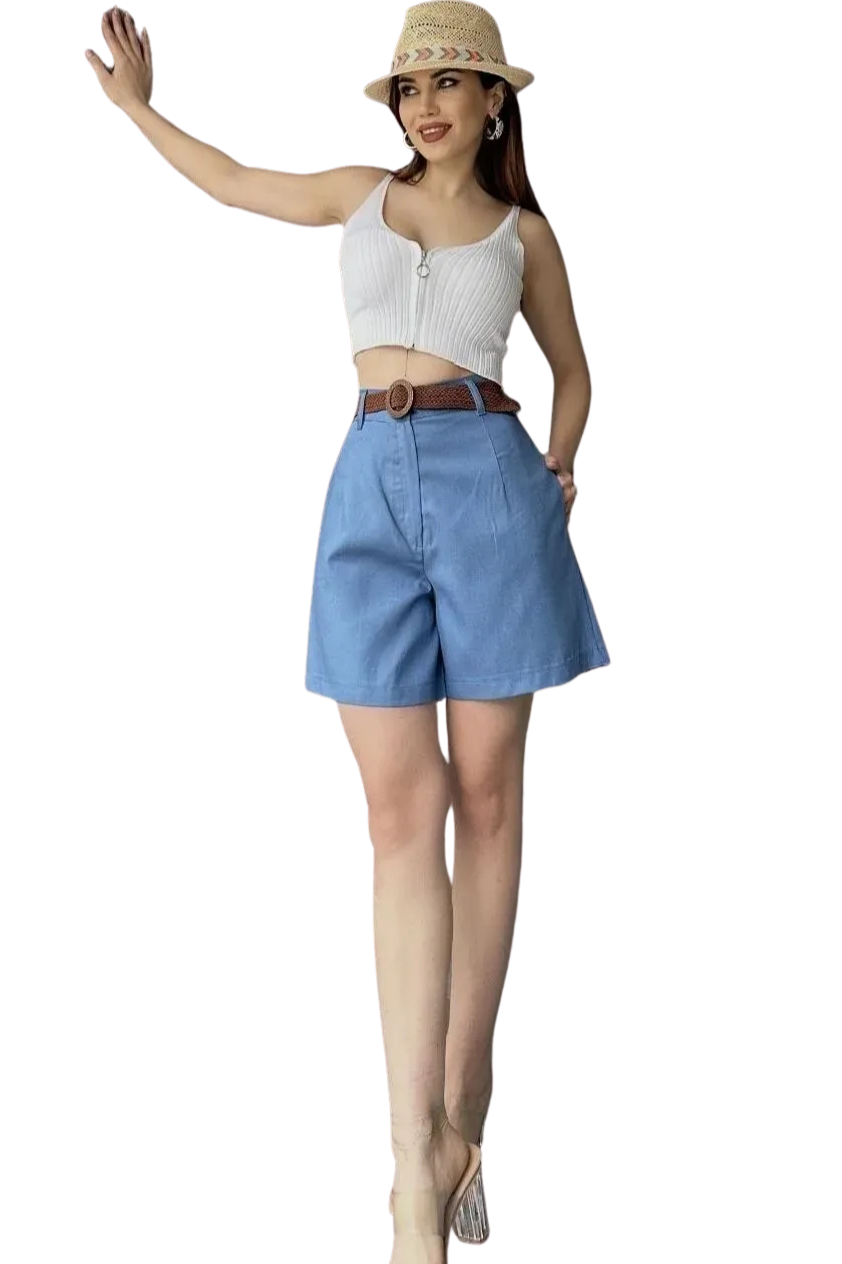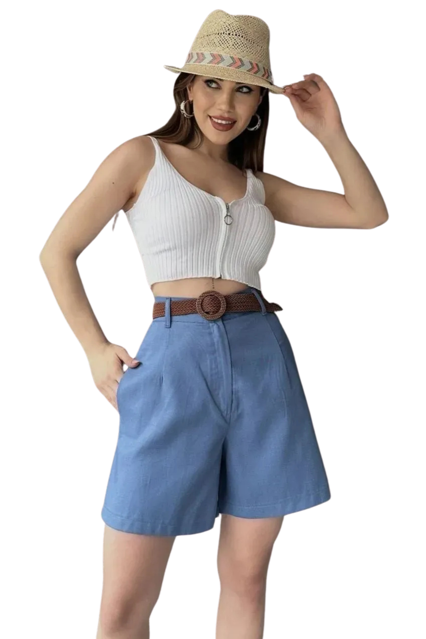 Açık mavi rengi, özellikle yaz sezonunda canlı ve enerjik bir görünüm sağlar. Üst giyimle kolayca kombinlenebilir; beyaz tişörtler, crop top’lar veya desenli bluzlarla mükemmel uyum sağlar. İster günlük hayatta ister özel davetlerde tercih edin, bu şort her ortamda şıklığınızla dikkat çekecektir.