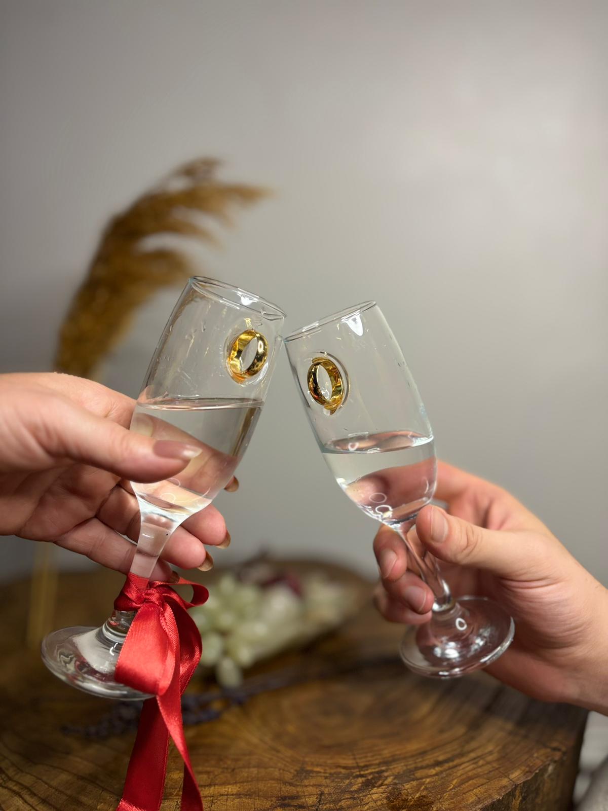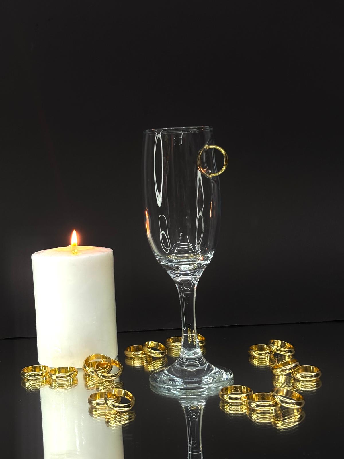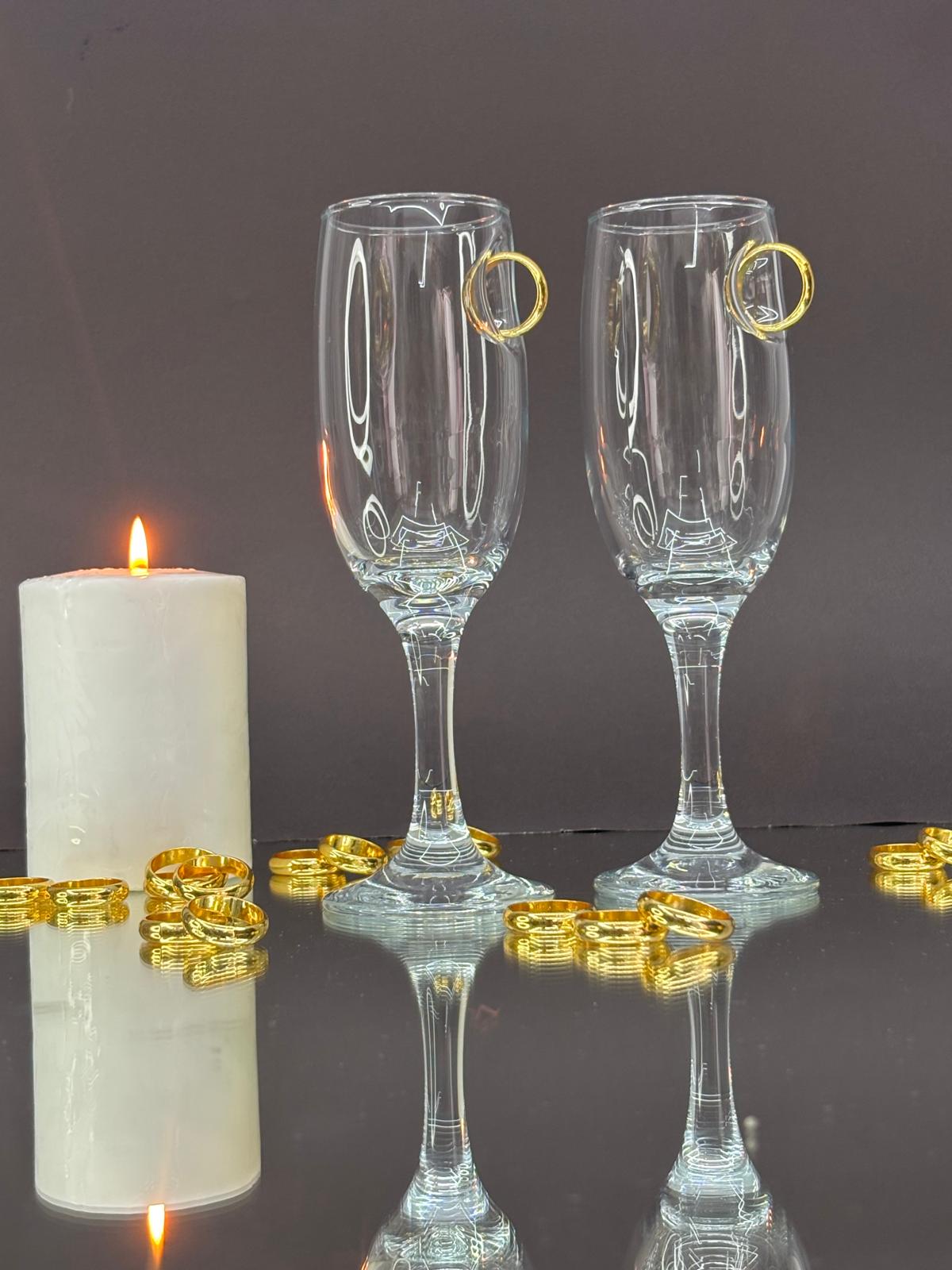 Şampanya kadehleri, düğün, nişan, yıl dönümü gibi özel kutlamalarda ve davetlerde vazgeçilmez birer parça olarak öne çıkar. Bu seti, evinizin barında, özel günlerde masalarınızda ya da misafirlerinizi ağırlarken rahatlıkla kullanabilirsiniz. Yüzük figürü, klasik bir tasarımın modern ve şık bir yorumunu sunarak, her ortama uyum sağlar.