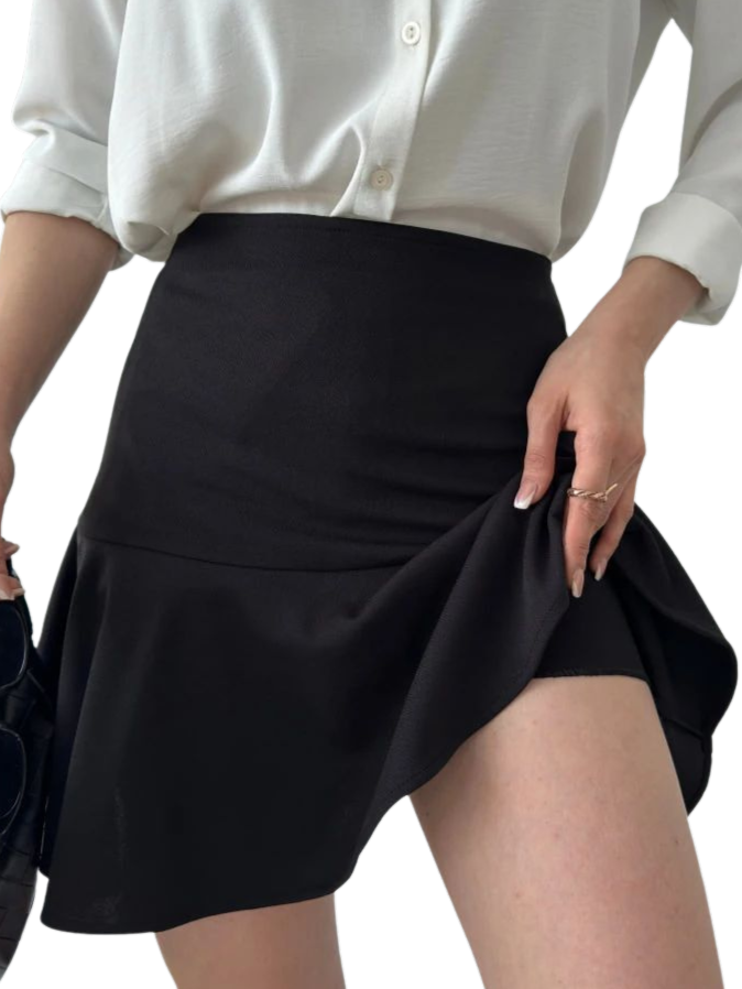 Volanlı etek, şık bir bluz veya tişört ile kombinlendiğinde mükemmel bir görünüm elde edersiniz. Yüksek bel tasarımı, hem zarif bir silüet oluşturur hem de belinizi daha ince göstermeye yardımcı olur. Dilerseniz, bele ışıltılı bir kemer ekleyerek stilinize ekstra bir dokunuş katabilirsiniz.