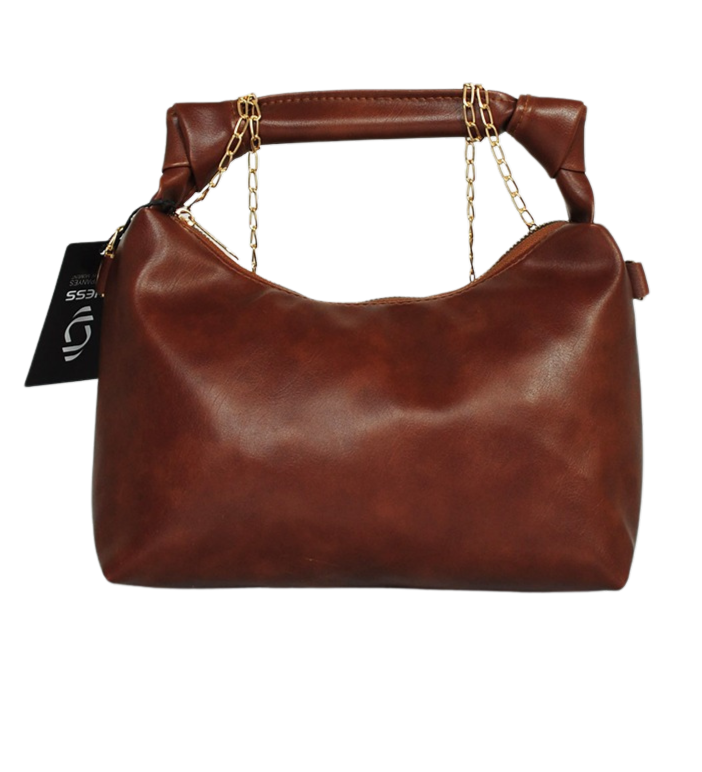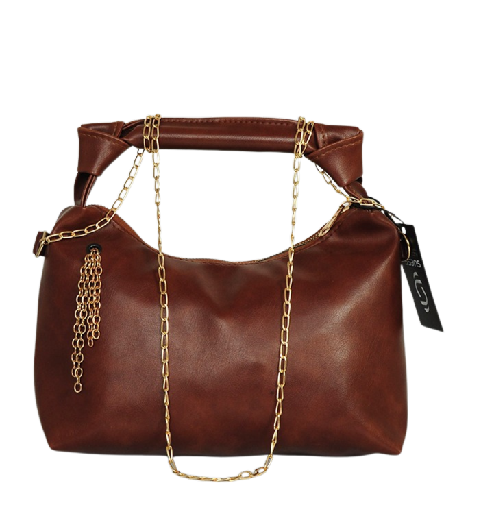 Zincir ve Düğüm Detaylı Deri Çanta - Kahverengi